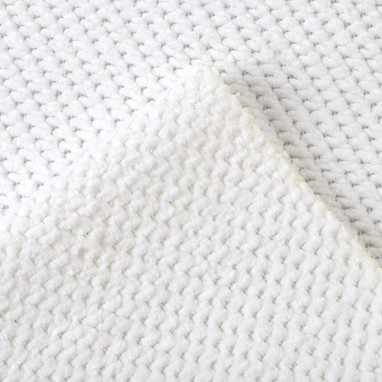 Ang aming Chenille 3# karpet na tela ay ginawa mula sa 100% polyester, tinitiyak ang isang matatag at pangmatagalang produkto. Ang komposisyon ng polyester ay hindi lamang nagpapabuti sa tibay ng tela ngunit ginagawang lumalaban din ito sa mga mantsa at madaling mapanatili.