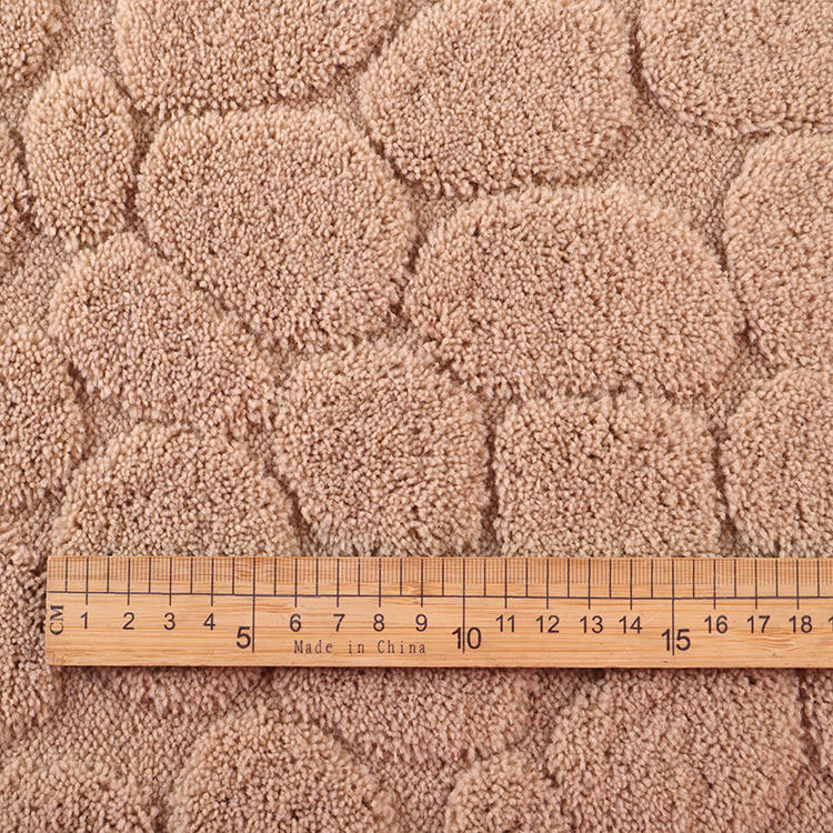 Bilang isang nangungunang tagagawa at tagapagtustos ng mga premium na produkto ng tela ng bahay, ipinagmamalaki naming ipakilala ang aming Jacquard Wilton Solid Tela, na idinisenyo upang matugunan ang pinakamataas na pamantayan ng kalidad at aesthetics. Ang pambihirang tela na ito ay nilikha mula sa 100% polyester, tinitiyak ang tibay at isang marangyang pakiramdam. Sa pamamagitan ng isang bigat na 570GSM, nagbibigay ito ng isang malaking at plush na texture, perpekto para sa isang hanay ng mga aplikasyon kabilang ang mga karpet, basahan, at mga banig sa paliguan.